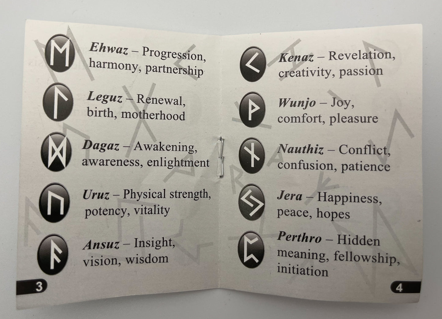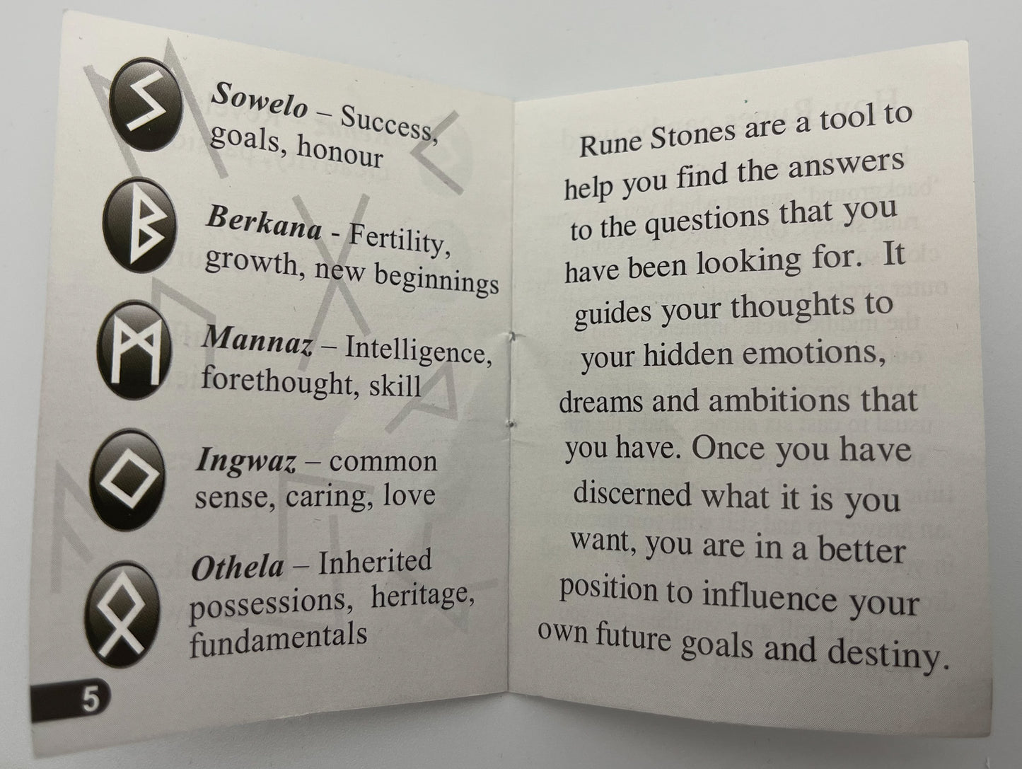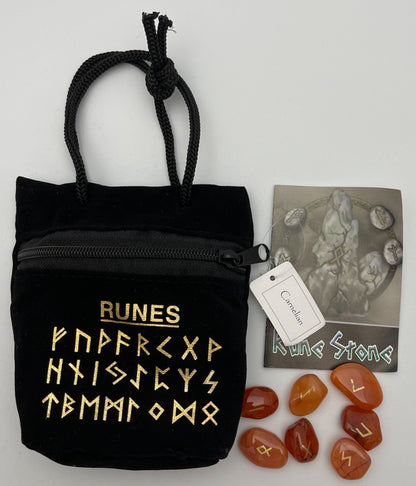 This rune set provides 25 tumbled and polished stones, each handcrafted to provide an even shape and design. The surface of each stone is gold-painted lettering, displaying the runes patterned after the germanic, elder futhark runes, which have been held since ancient times to possess great power and meaning among the germanic and Norse peoples and faiths.